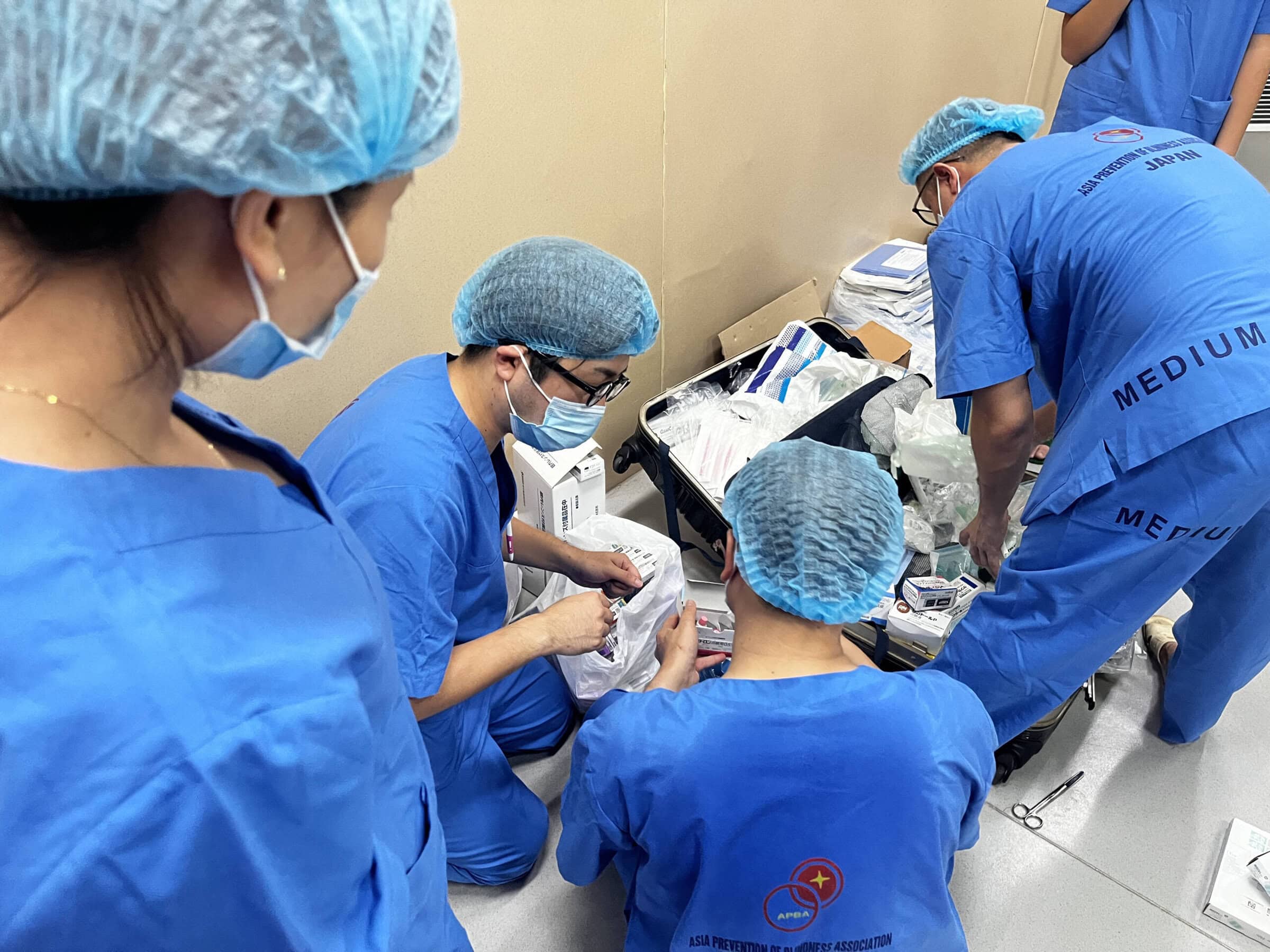今回の活動は、Asia Prevention of Blindness Association(APBA)と現地の医師と協力して実施しており、ボランティアチームは眼科医を含む14名のメンバーで構成され、手術に必要な医療機器や薬剤、眼内レンズなどを持ち込み、87名の患者に対して無償で白内障手術を行いました。