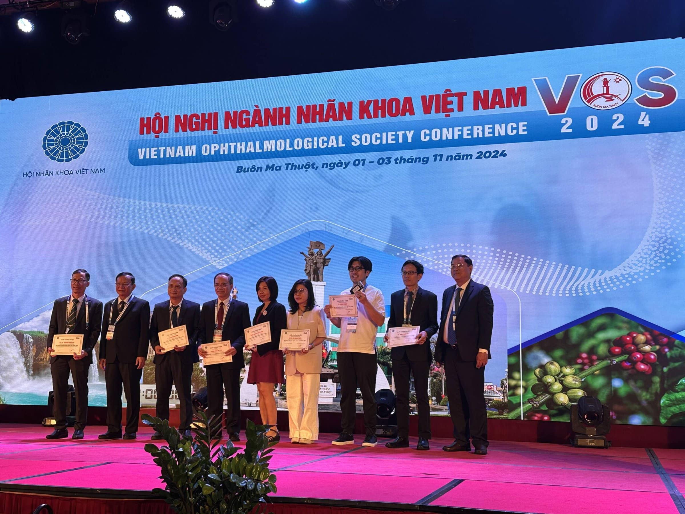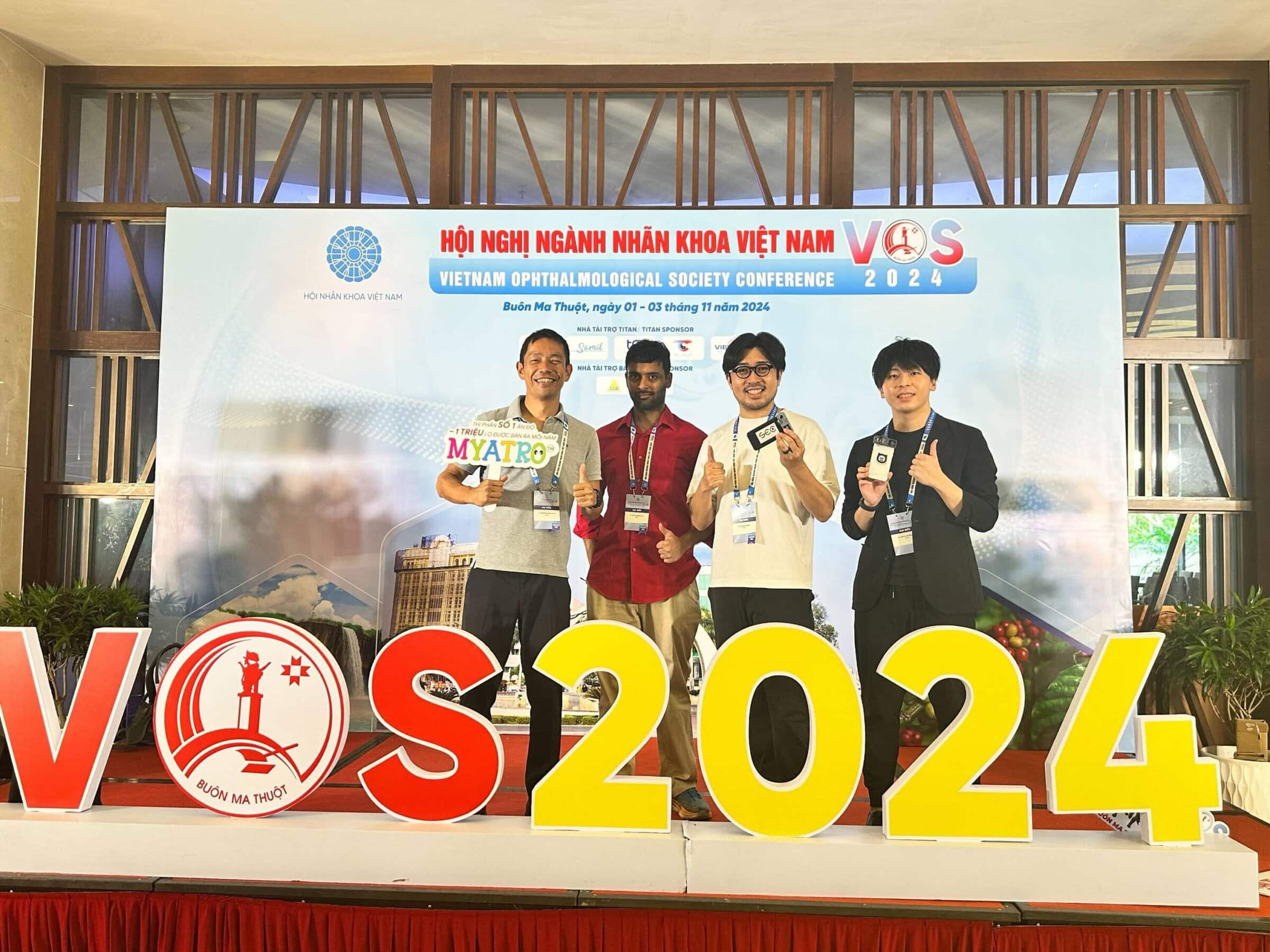2024年11月2日から4日にかけて、OUI Inc.のCEOである清水、COOである中山、視能訓練士である西村、そしてDr. Rohanの4名が、ベトナム・バンメトートで開催された“Vietnam Ophthalmology Session 2024 (VOS 2024)” に参加し、招待講演を行いました。この学会はベトナム最大の眼科学会であり、ベトナム国内外の眼科医療の専門家が集う場となっています。